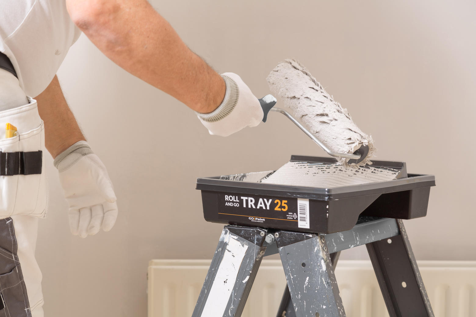 Met de Roll and Go Tray 12 en 25 kan je elke kleine schilderklus met kwast en roller prima uitvoeren. Het hellende rolvlak zorgt voor een perfecte verdeling van de verf op de roller en laat de overtollige verf vanzelf terugzakken in het reservoir. Wanneer je de roller met het hengsel over de opstaande rand hangt of parkeert in het achterste vak, heb je volledige toegang tot de verf voor een kwast.